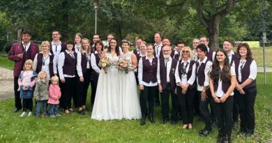 Am Samstag, den 16. August durften wir vom Musikverein Bretzfeld ein ganz besonderes Ereignis musikalisch begleiten. Die Hochzeit unserer lieben Isabell und ihrem Mann Andre. Die Trauung fand in der Stiftskirche Öhringen statt, und direkt im Anschluss haben wir im Schlosshof, bei strahlendem Sonnenschein, ein Ständchen zum Sektempfang gespielt.